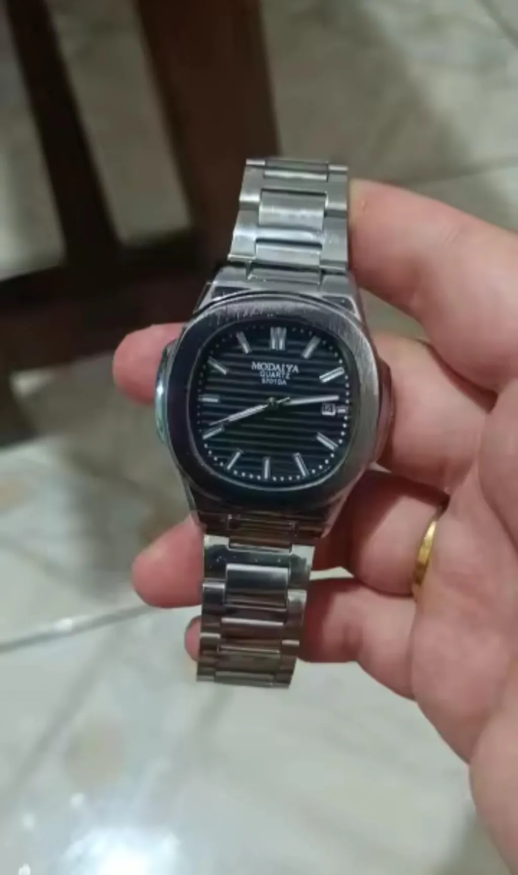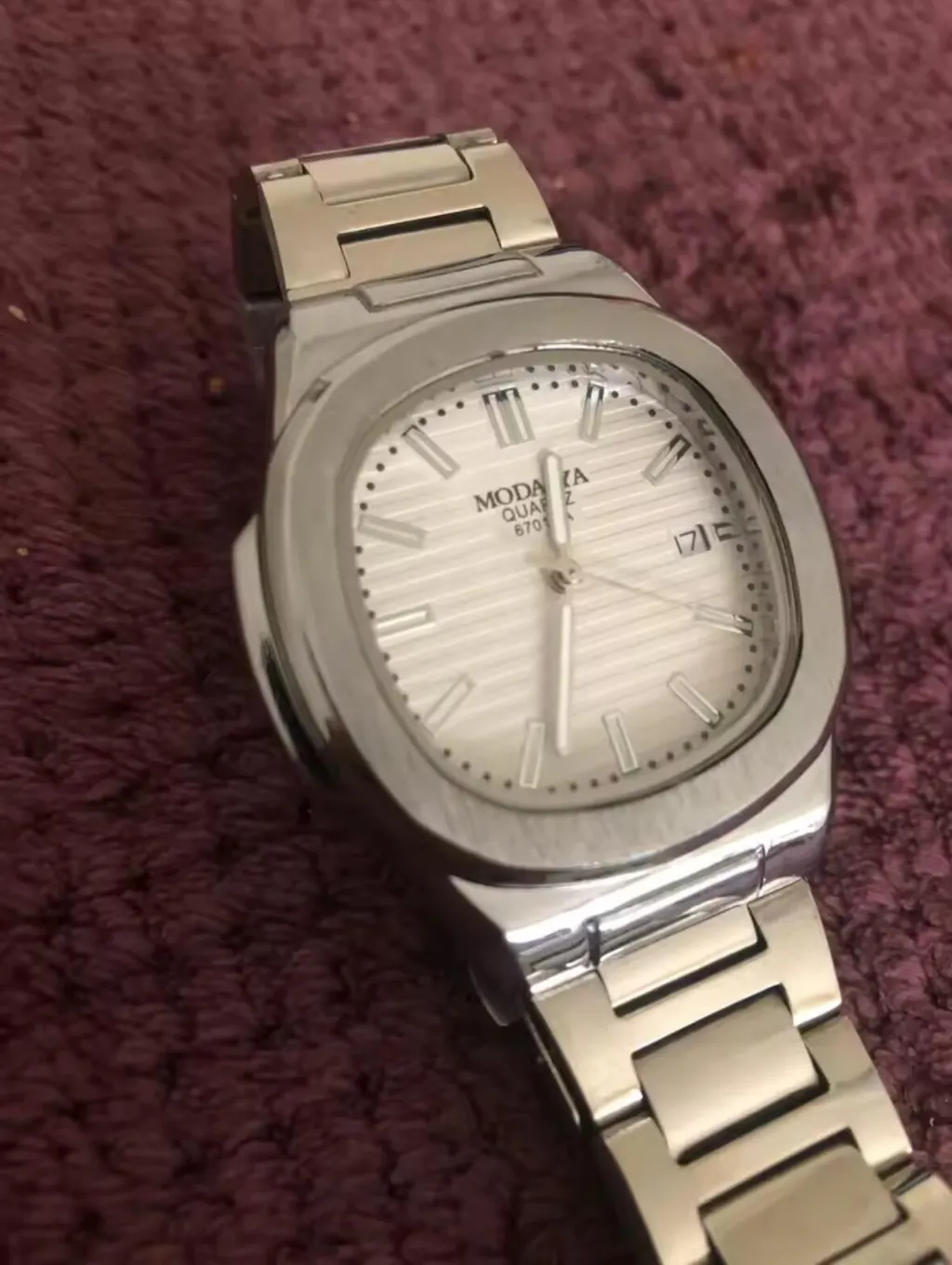 Luxury Men’s Silver Stainless Steel Watch – Big Dial Quartz Calendar Wristwatch